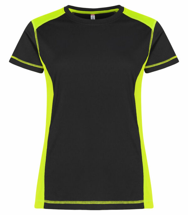 Kontrastfarget T-skjorte som gir økt synlighet. Ribb, kontrastsøm og elastan i kragen. Polyesteren som er brukt i t-skjorten er resirkulert. Forsterket nakketeip og en lett avtagbar etikett for rebranding.